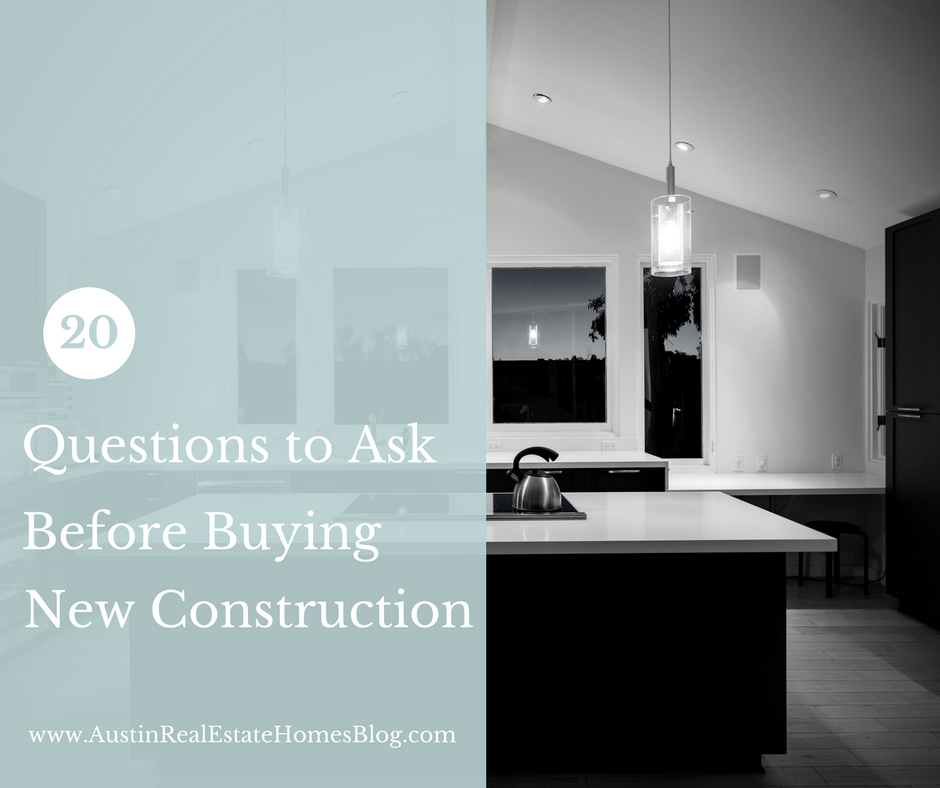 Buying new construction can be a very appealing option for many Austin home buyers. Selecting your finishes, paint colors, tile, flooring and floorplan means you probably won’t have to make any changes to the house before moving in. If you’re enticed by the thought of living in a home no one has lived in, we understand. We also know how to navigate the new home buying process to make it an all around positive experience. Before you buy a brand new home from an Austin builder, check out our top 20 questions to ask before buying new construction.