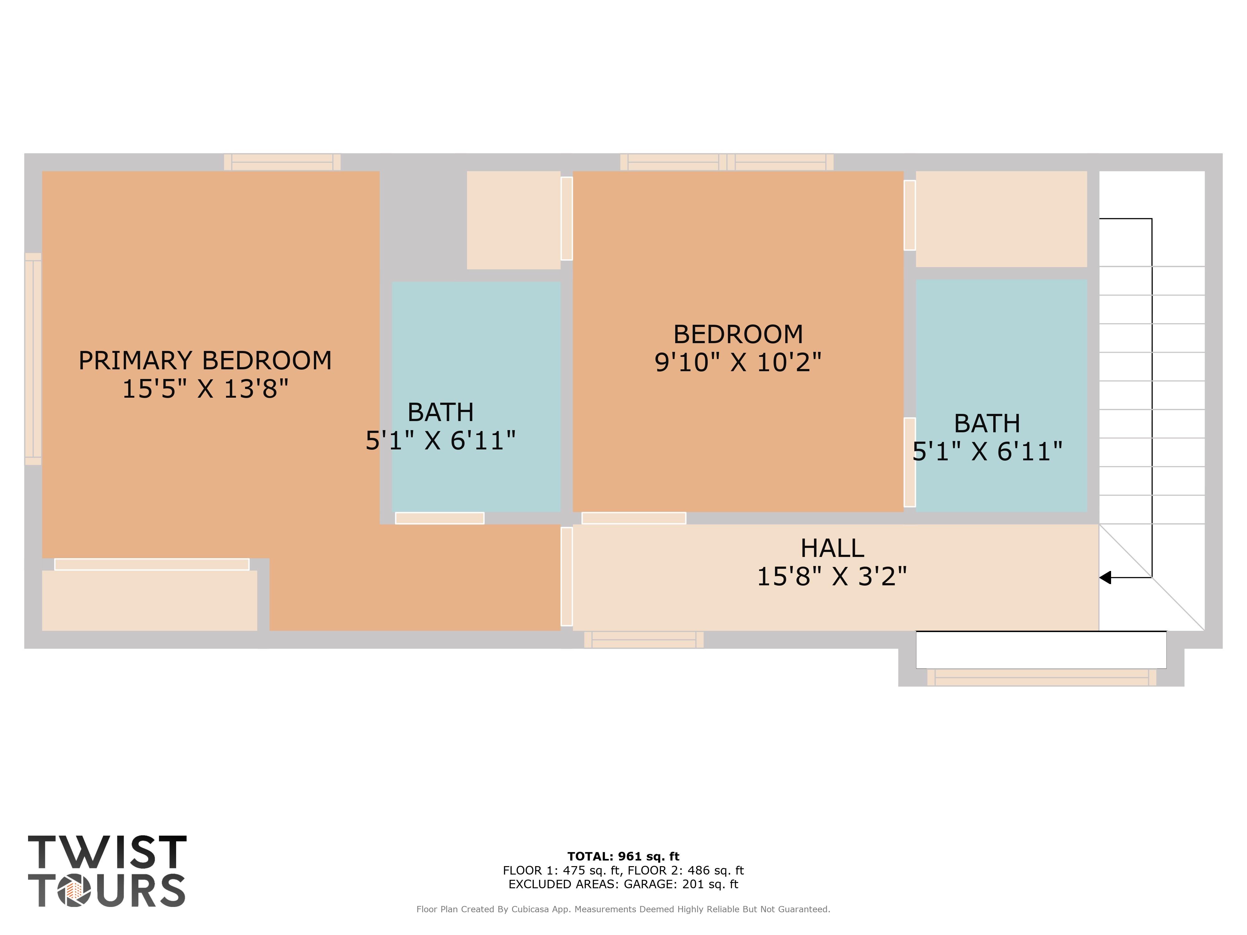 - 2 Full Bathrooms Upstairs and 1 Half Bathroom Downstairs