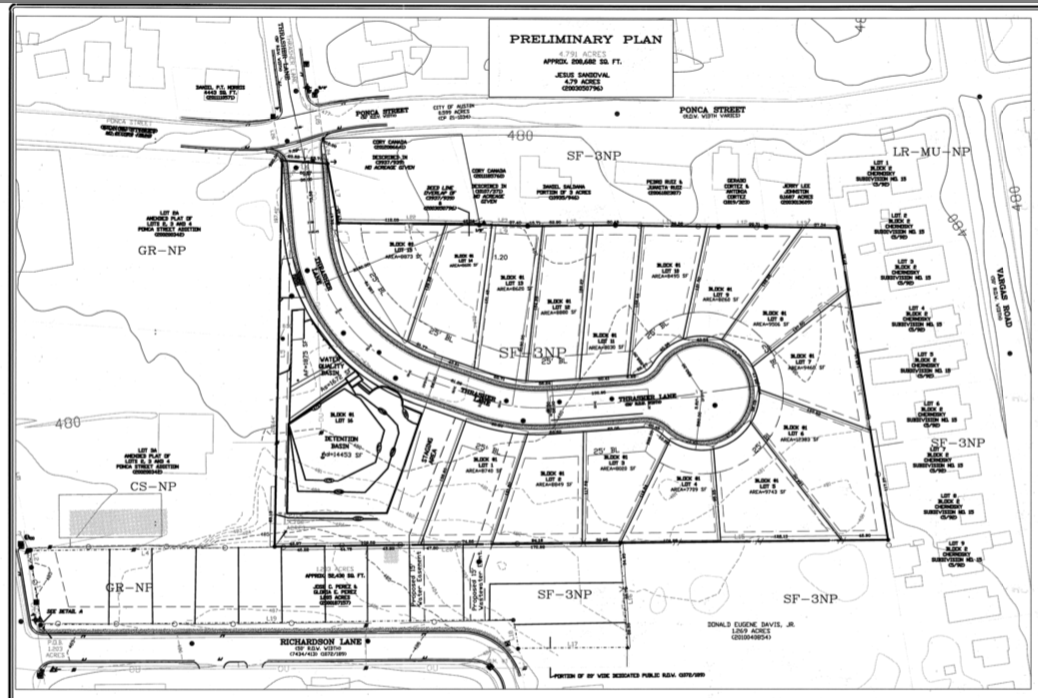 If approved, this 23 acre parcel is located behind Civitan Park will be mixed residential and commercial use. The property will have automobile access from 183 and pedestrian access from Ponca Street for easy access to Alison Elementary. The plan is for 342 residential units as well as commercial space. The city has asked the developer to provide for a north/south hike and bike trail to connect to the proposed 183 Tollway Trail to the north and the Montopolis Tributary Trail Network to the south.