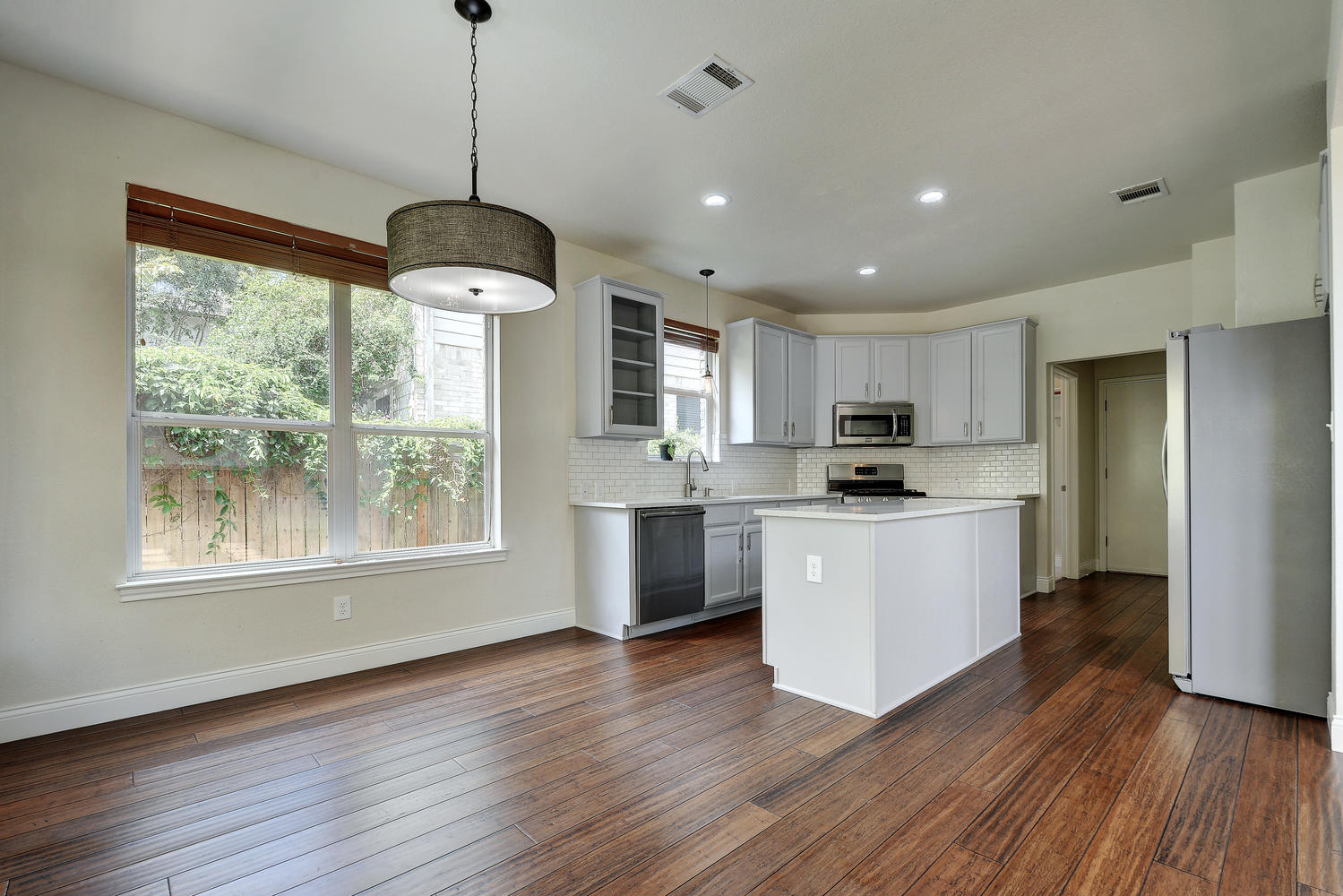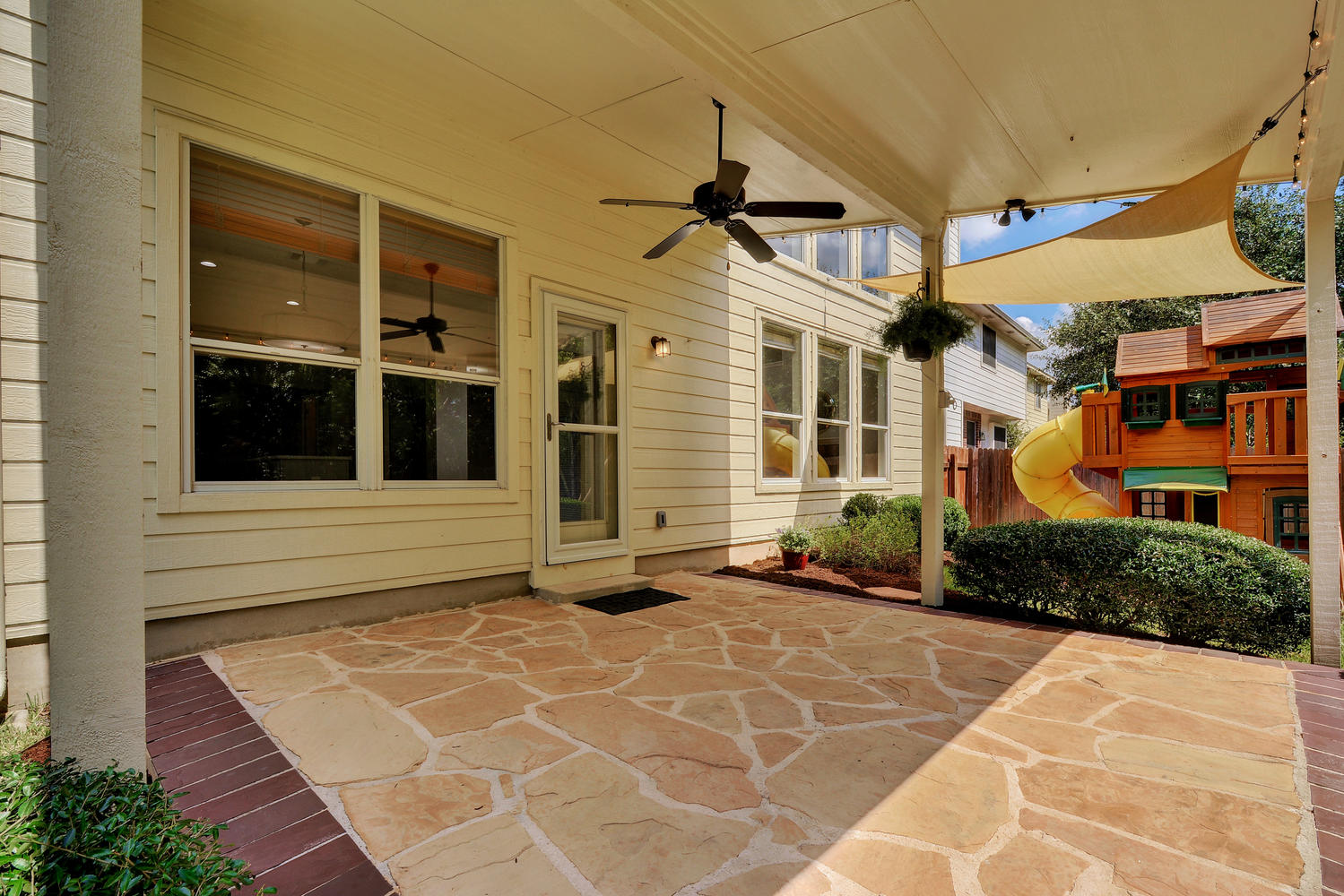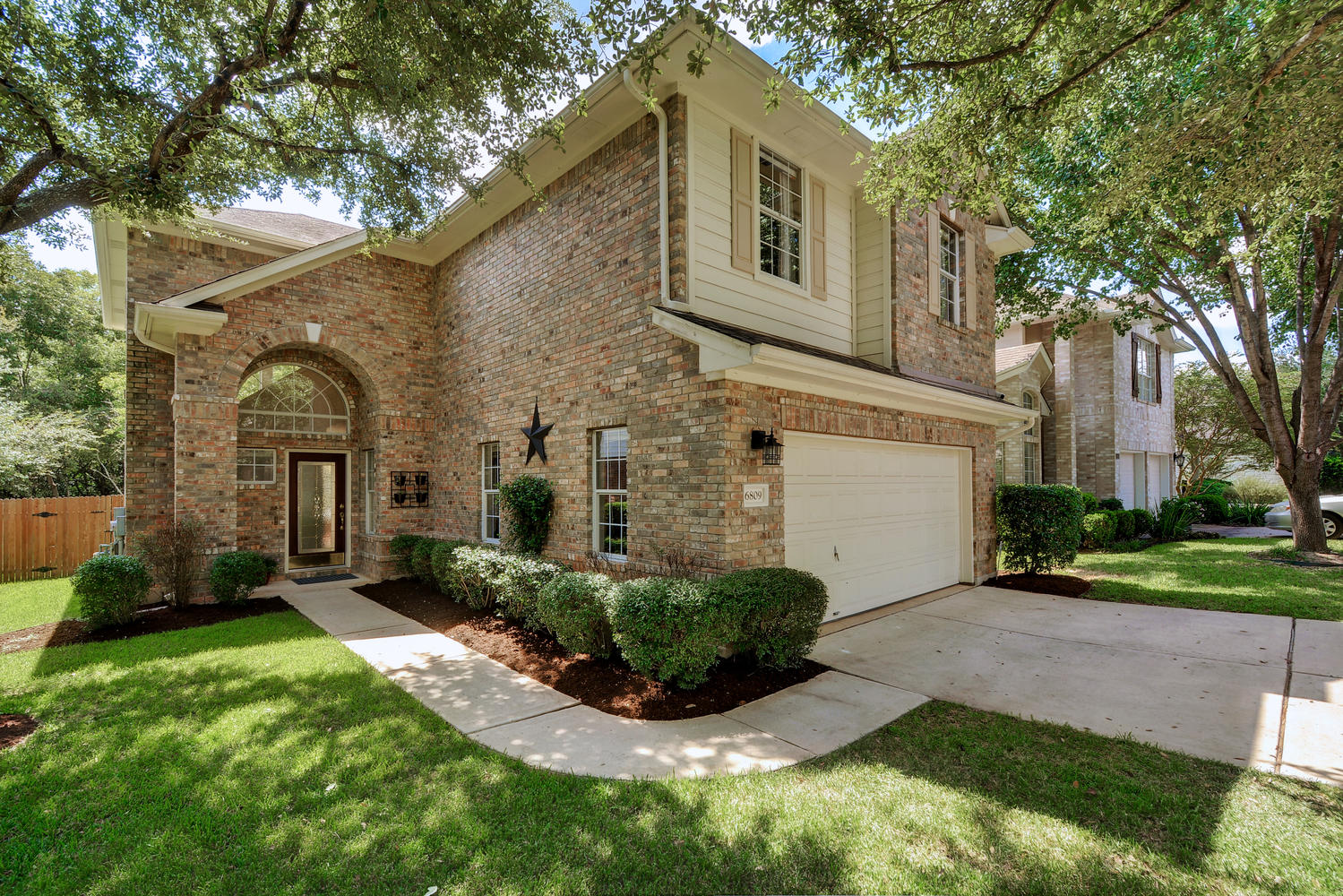 Recently remodeled with many “green” updates. HanStone Quartz counters made with 24% recycled mirror content. Low VOC painted kitchen cabinets. Mythic (zero VOC, non-toxic) paint in bedrooms. Scratch resistant, ultra-low VOC, Cali Bamboo floors downstairs. Upstairs carpet recently replaced. Two story living room with arched windows for an abundance of natural light. All bedrooms, including master, and office are upstairs. Covered flagstone patio overlooks private backyard with playscape. Wrought iron rear fence maximizes serene greenbelt views. Two Live Oaks in front yard for year round foliage and shade. Google Fiber coming soon. Transferable home warranty. 5 minutes to HEB and Escarpment Village. 10 minutes to Arbor Trails shopping and dining. Easy access to 290/71, MoPac and Downtown.