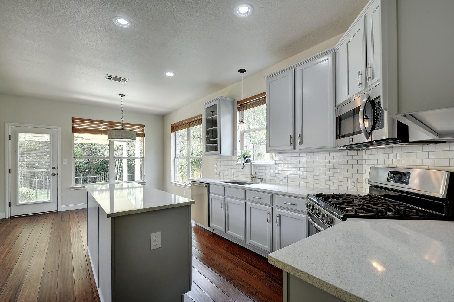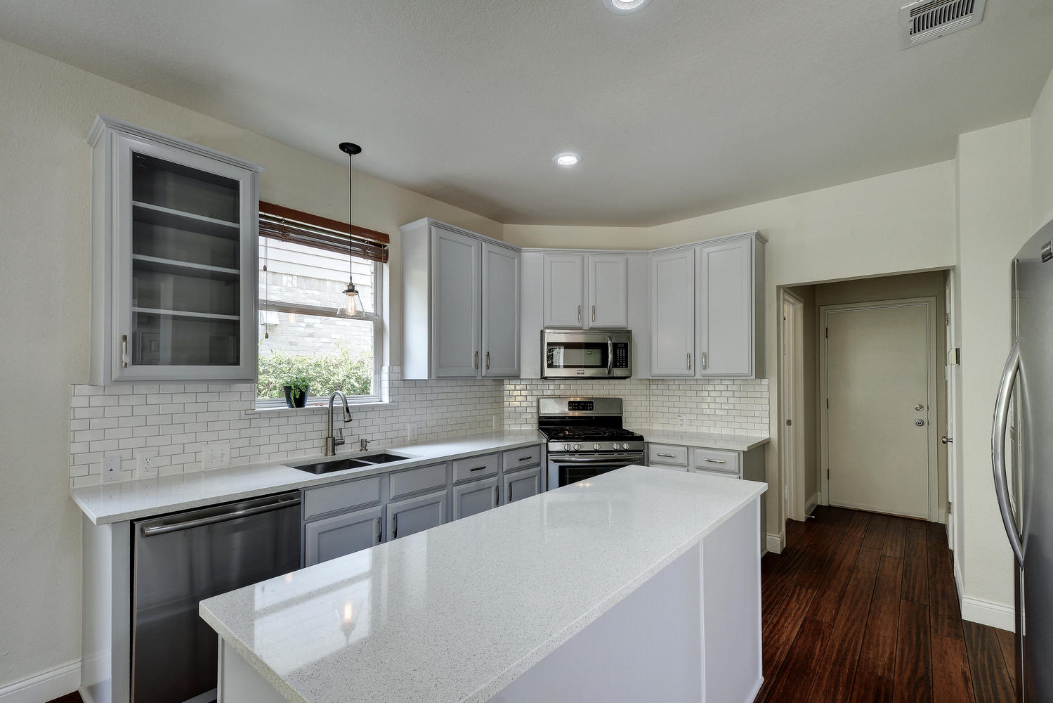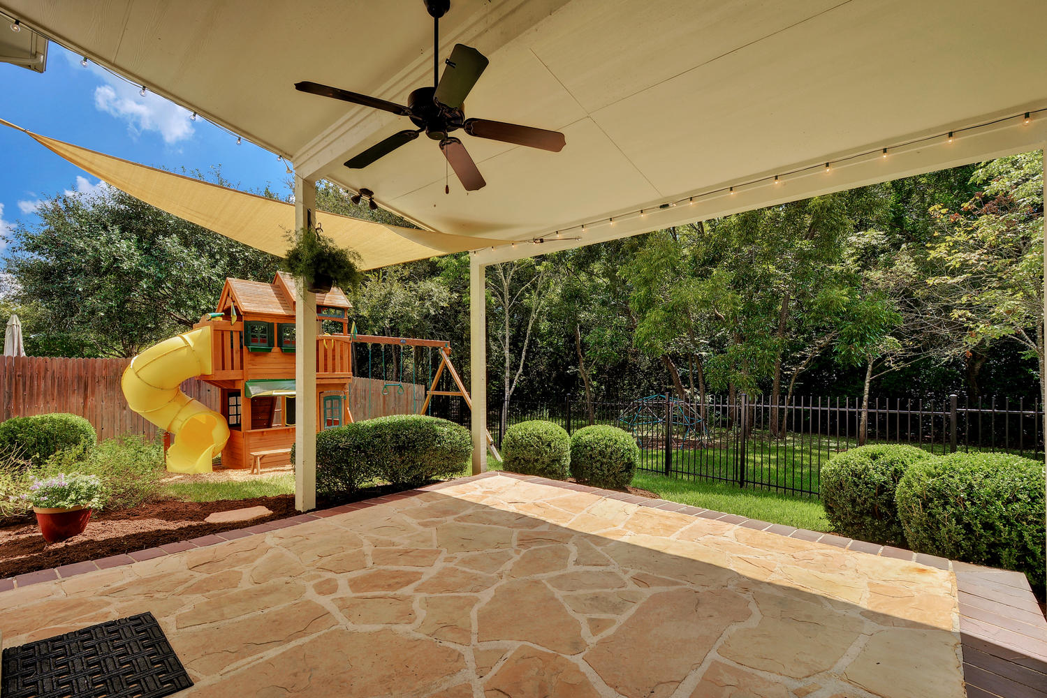 Recently remodeled with many “green” updates. HanStone Quartz counters made with 24% recycled mirror content. Low VOC painted kitchen cabinets. Mythic (zero VOC, non-toxic) paint in bedrooms. Scratch resistant, ultra-low VOC, Cali Bamboo floors downstairs. Upstairs carpet recently replaced. Two story living room with arched windows for an abundance of natural light. All bedrooms, including master, and office are upstairs. Covered flagstone patio overlooks private backyard with playscape. Wrought iron rear fence maximizes serene greenbelt views. Two Live Oaks in front yard for year round foliage and shade. Google Fiber coming soon. Transferable home warranty. 5 minutes to HEB and Escarpment Village. 10 minutes to Arbor Trails shopping and dining. Easy access to 290/71, MoPac and Downtown.