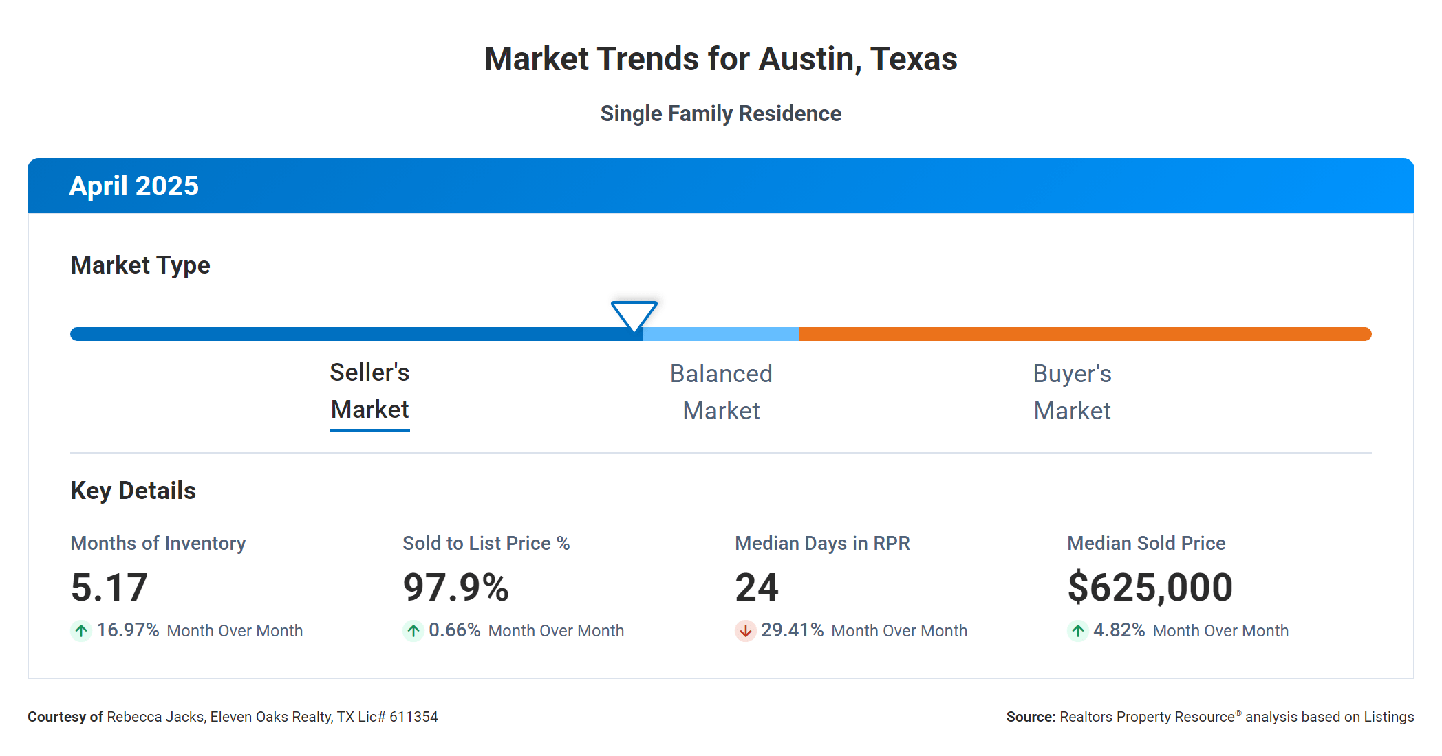 Do you have questions about our April 2025 Austin Real Estate Price Report? Call us at (512) 827-8323 or email us at info@11OaksRealty.com and we’ll help you in any way we can. If you’re looking to buy or sell Austin real estate, don’t forget to check out our Buyer Resources and our Seller Resources for more tips.