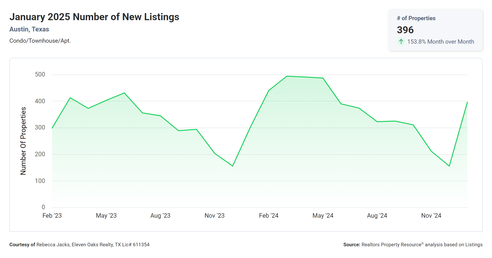 Eleven Oaks Realty is proud to present their January 2025 Austin Condo Price Report measuring activity in the Austin condo market. Our January 2025 Austin Condo Price Report covers all condominiums and townhomes in the City of Austin.