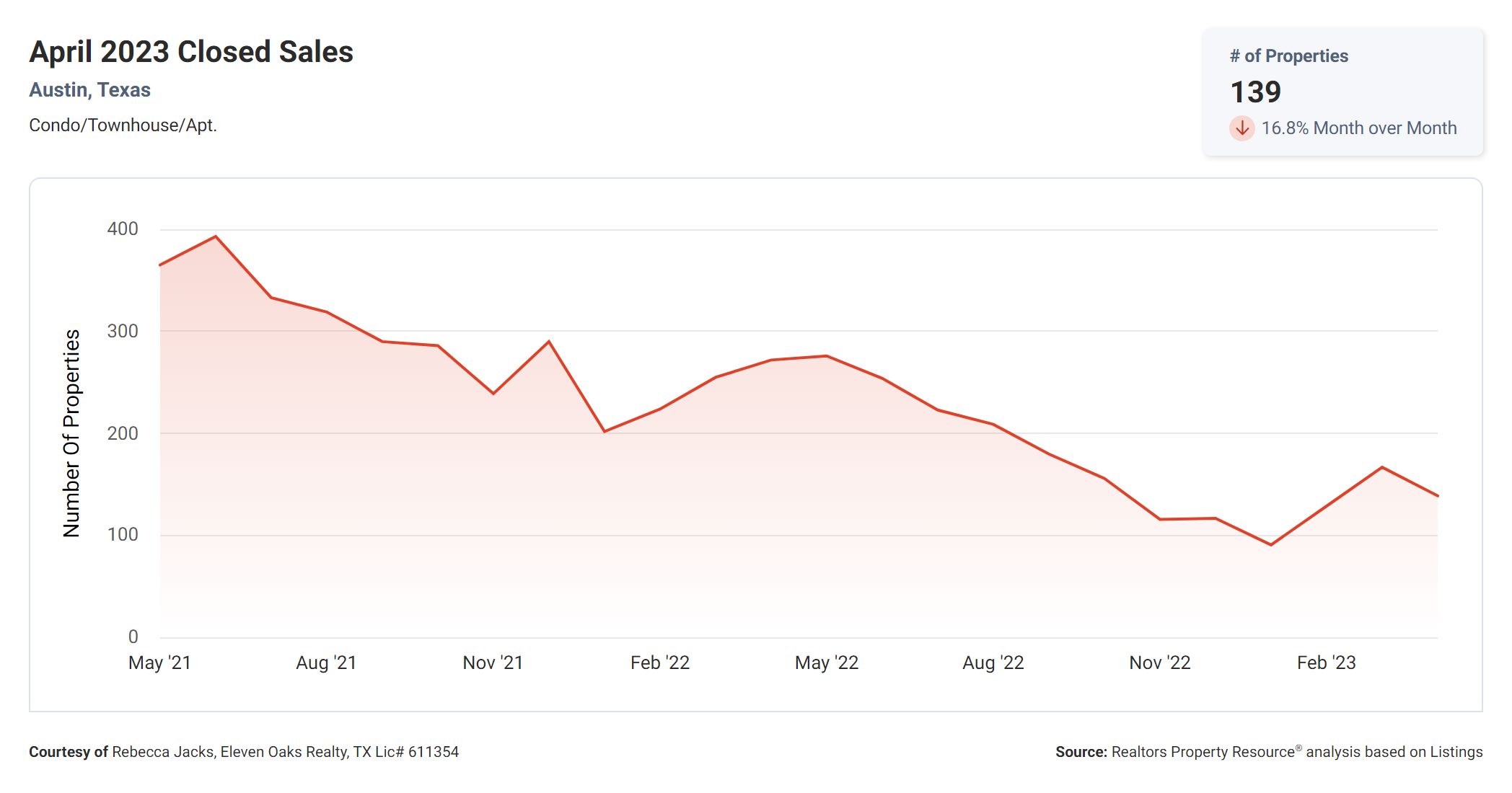 Eleven Oaks Realty is proud to present their April 2023 Austin Condo Price Report measuring activity in the Austin condo market. Our April 2023 Austin Condo Price Report covers all condominiums and townhomes in the City of Austin.