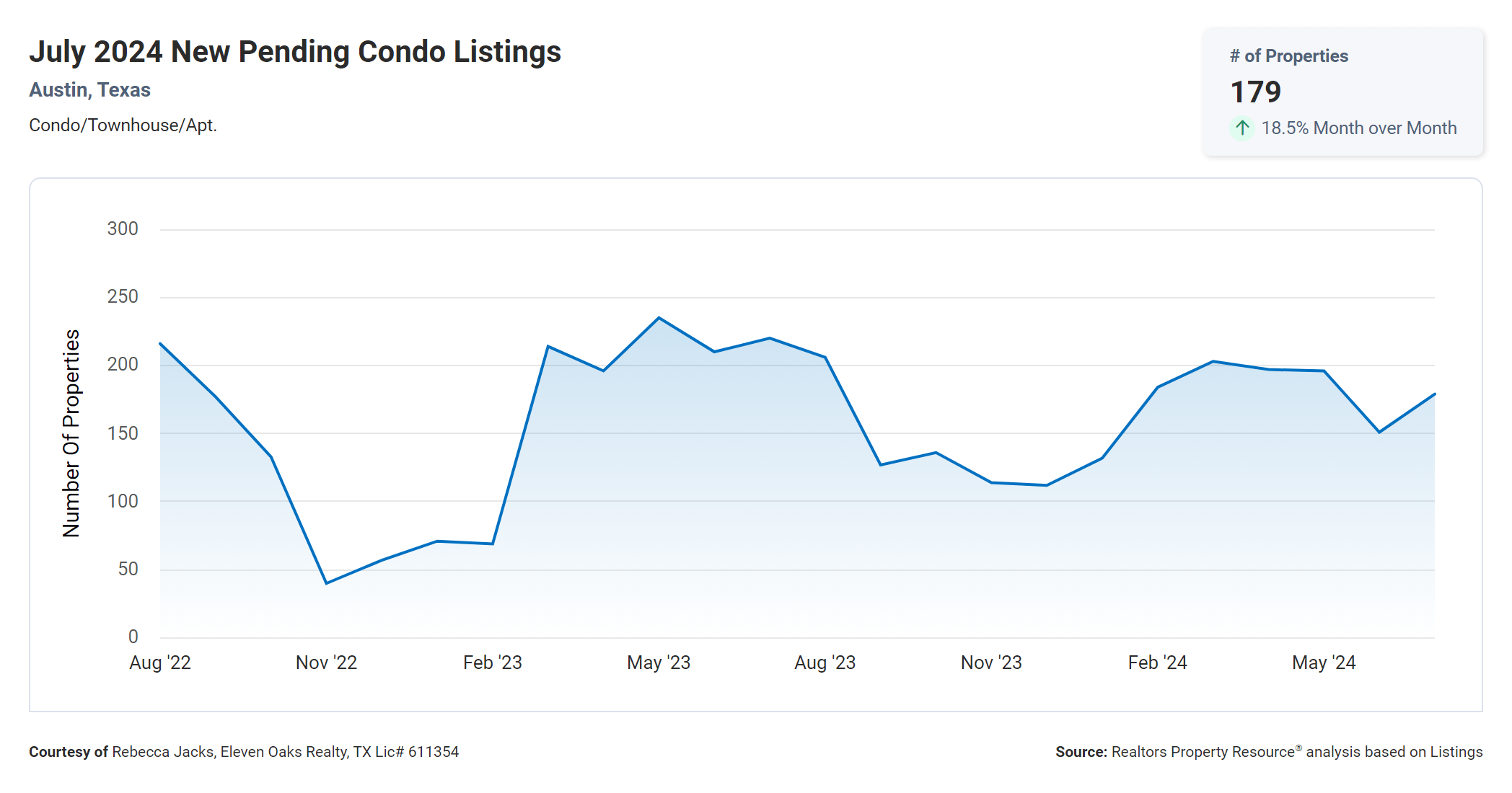 Eleven Oaks Realty is proud to present their July 2024 Austin Condo Price Report measuring activity in the Austin condo market. Our July 2024 Austin Condo Price Report covers all condominiums and townhomes in the City of Austin.