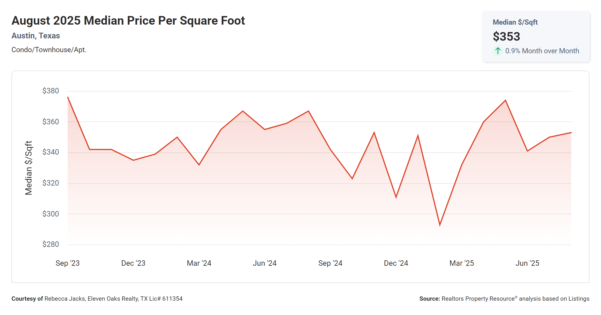 Do you have questions about our August 2025 Austin Condo Price Report? Looking to buy or sell a condo or townhome in Austin? Call us at (512) 827-8323 or email us at info@11OaksRealty.com and we’ll help you in any way we can.