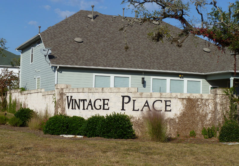 Circle C Vintage Place is located off Slaughter Lane just west of the Escarpment intersection. The neighborhood can be accessed from Vinemont Drive or Bungalow Lane, both off Slaughter Lane.